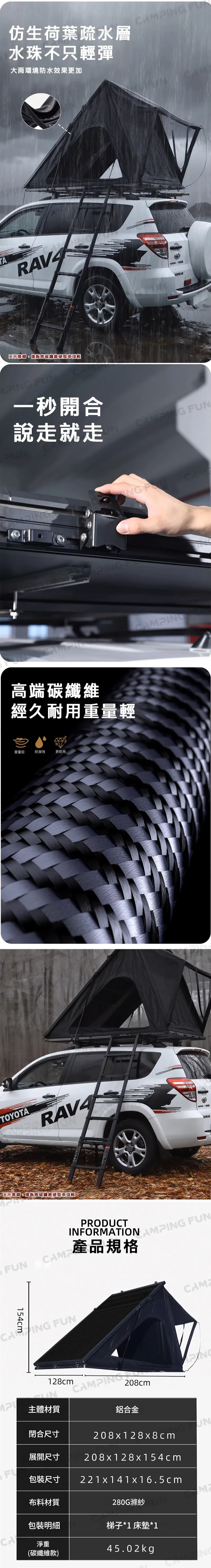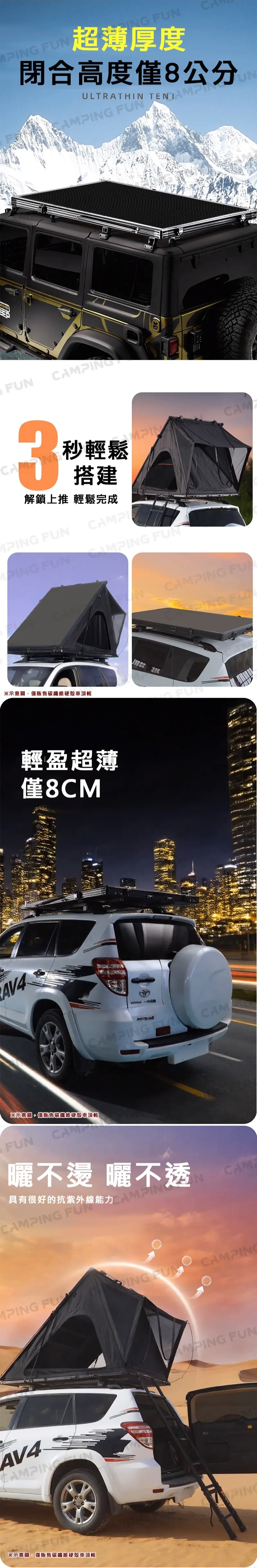 首頁 > 購物車 > 車頂帳 > 【CAMPING FUN】8CM 碳纖維硬殼車頂帳